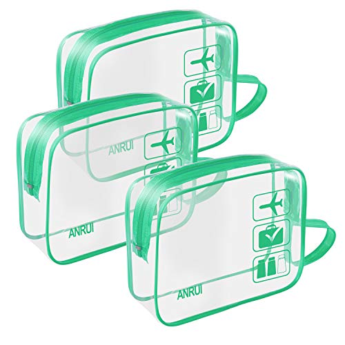 (3 Pack) TSA-Approved Clear Travel Toiletry Bag With Handle Strap, ANRUI Airline Kit 3-1-1 Clear Liquids Toiletries & Cosmetics Organizer Carry-On Luggage for Women and Men (Turquoise)