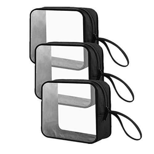 3pcs TSA-Approved Clear Travel Toiletry Bag With Handle Strap, ANRUI Airline Kit 3-1-1 Clear Liquids Toiletries & Cosmetics Organizer Carry-On Luggage for Women and Men (Black- update)