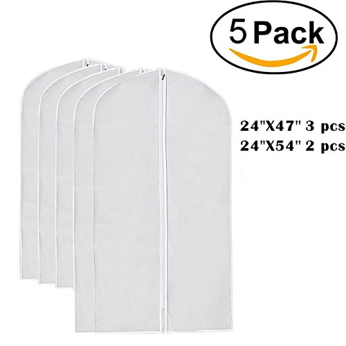 5 Pack PEVA Garment Bag, 3 Pcs 47 inch, 2 Pcs 54 Inch, Extra Length for Dresses, Gowns, Clothes Storages, Full Zipper Suit Bag , Light Weight by La Saveur