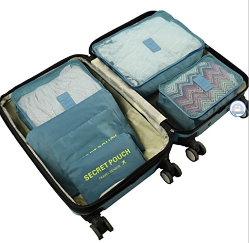 6Pcs Travel Storage Bags Clothes Packing Cubes Luggage Organizer Pouch (Gray Blue)