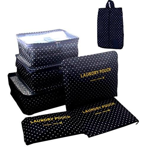 7 Set Travel Packing Organizer,Waterproof Mesh Durable Luggage Travel Cubes with 1 Shoe Bag – Travel Luggage Compression Organizers (Navy Polka Dot)