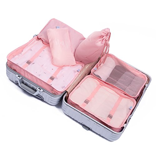 7pcs Travel Packing Cubes Lightweight Waterproof Compression Luggage Laundry Large Storage Toiletry Bag Organizers