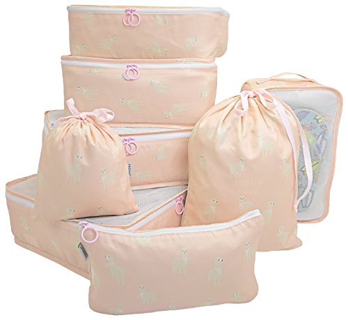 Great packing cubes! This is a very nice set of packing cubes. I love the cute print but I also love the variety of sizes included. The material may seem thin, but this is a bonus for me because it is sturdy yet lightweight. These cubes make packing my babies clothes so much easier because I can keep track of everything and it doesn’t get mixed in with my things in a suitcase. I do love them for me too. When I travel alone, it will keep everything organized and I will know what is dirty and what is clean and I…