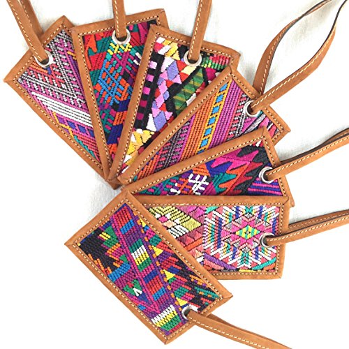 Spot your luggage easily & keep it safely marked with our beautiful huipile luggage tags. Recycled geometric-patterned fabric from huipiles (Mayan traditional blouses) & rich nubuck leather are used to create these colorful & beautifully patterned luggage tags, making each one truly one-of-a-kind. Each tag features a plastic window for your contact information/identification card, & a matching leather loop to attach to your travel bag. Measures 5″H x 2.75″W with a 6″L loop.