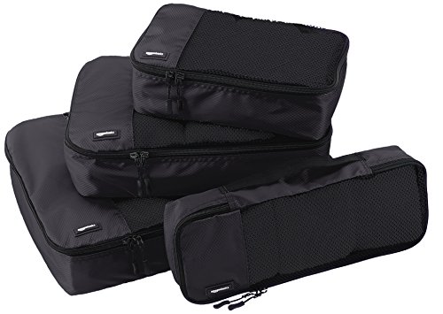 AmazonBasics 4-Piece Packing Cube Set – Small, Medium, Large, and Slim, Black