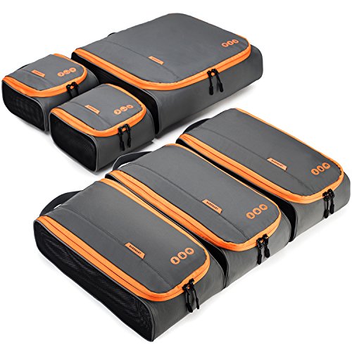 BAGSMART 6 Sets Travel Luggage Organizer 3 Sizes Large/ Medium/ Small Packing cubes with Laundry Bag