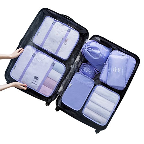 Belsmi 8 Set Packing Cubes – Waterproof Compression Travel Luggage Organizer With Shoes Bag (Purple)