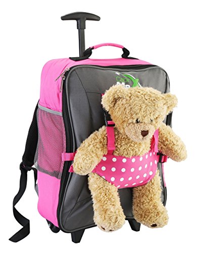Cute and practical, makes kids want to carry their own luggage! Great travel suitcase for young kids! These were the perfect size to pack a week’s worth of clothing, a couple of books and a portable DVD player for a vacation and fit easily under the seat in the airplane after the stuffed animal was removed. I like that the suitcase can be easily pulled or carried like a backpack, as one of my kids prefers to pull and the other prefers to carry. It does, however, tend to tip over when stood upright since it is less rigid than our other rolling suitcases, but…