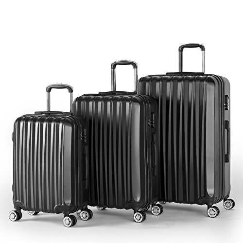 Compaclite Voyager ABS + PC 3 Piece Luggage Set Lightweight Spinner Suitcases, Black