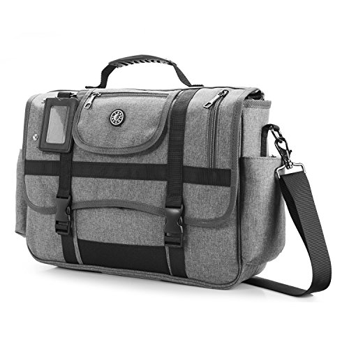 CoolBELL bases on the cutting-edge of fashion trends. Pursuing the best quality of laptop bag category and devoting to providing the best product and service to customers. We make every effort to achieve the best in every detail of design,color, material, sewing, sales and service. Brand: CoolBELL Description: Multi-functional Messenger Bag Size: Size: 17.7 x 11.8 x 3.5 inches; Fits up to 15.6 inches laptop. Weight: 1.0 kg Color: Black Grey Material: Oxford Nylon cloth; 210D waterproof polyester lining Two carrying styles: Shoulder bag style: Include a adjustable shoulder strap, can be removable. Metal hook, more durable. Messenger bag style: The strong handle with TPU material improve the handing feelings. Two buckle hook to fix the front flap to keep the bag safe, and protect your items. Roomy Main compartment. The main compartment keeps 15.6 inch laptop, iPad, books, two-days clothes. Varies pockets. Under the flap,5 small pockets, 1 big pockets,7 pen slots; 3 small pockets with zipper on the flap; Include a removable pouch with Velcro for keeping bus card. Two side pockets for keep watter bottles. Features: Study Business Leisure Travel Warm Tips:Thanks for your purchasing in our store! Please do not worry about the no poisonous material smell with the bag when you receive it, the smell will disappear in a airy place for a while.Any problems about the bag which you buy from us, please let us know. CoolBELL will try the best to solve it.