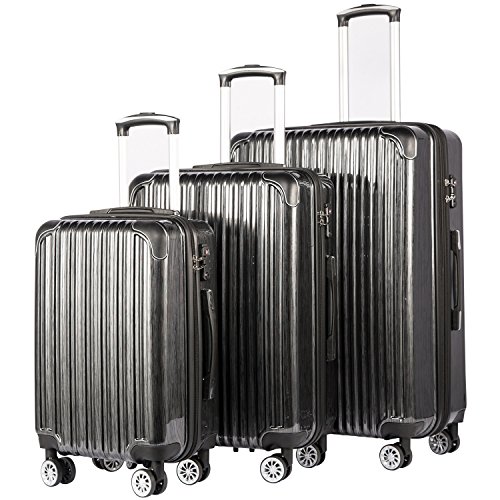 Coolife Luggage Expandable 3 Piece Sets PC+ABS Spinner Suitcase 20 inch 24 inch 28 inch (black)