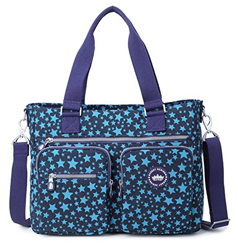 Crest Design Women’s Water Repellent Nylon Shoulder Bag Handbag Tablet Laptop Bag Notebook Briefcase Travel Work Tote Bag Notebook Briefcase (Large, Navy Star)