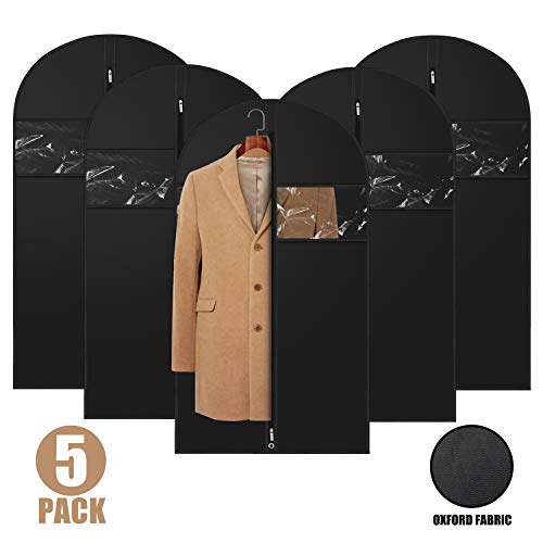 ETERNLEAF Oxford Garment Bags Suit Bag for Travel and Clothing Storage, 43 Inch Protector with Metal Eyelet and Transparent Window, Washable Suit Cover for Suits, Dresses, Coats, Black, 5 Pack