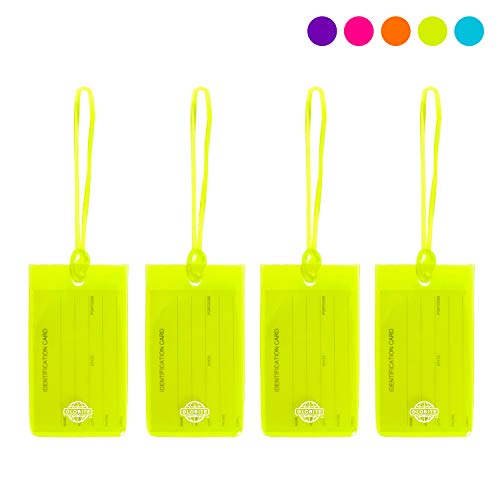 Identify your luggage with these fun and vibrant Globite Jelly Luggage Tags. Included in each tag is an ID card for you to record your information so your bag can be easily identified and returned to you if it is lost. Dimensions: 2.3in H x 4.3in W x .11in D. Item Weight: 0.6 ounces