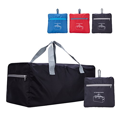 The foldable duffle bag is made in high quality water resistant and ripstop fabric,with smooth metal zipper.Only 0.52lbs and magazine folding size but 55l and 40kg capacity,