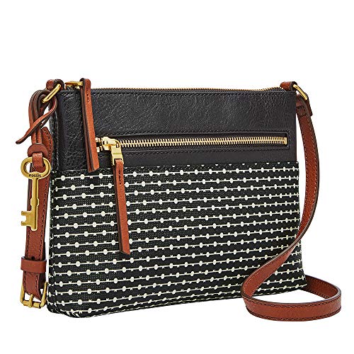 Fossil Women’s Fiona PVC Small Crossbody Handbag, Black Stripe
