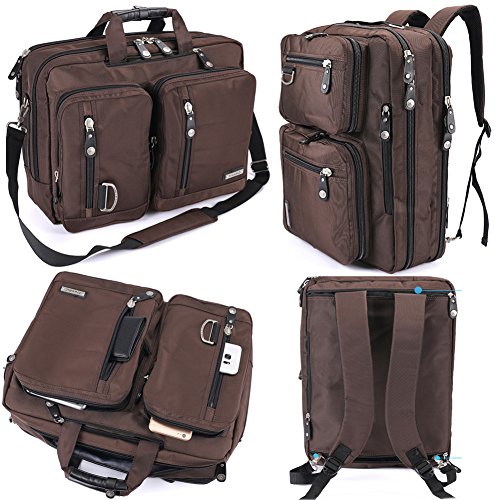 - The item size:20 x 15 x 8 inches The laptop room size:18*13*2.5 inches,Please check your laptop size before order.3-in-1 Multi-Purpose: Briefcase Transforms ,Sleek and versatile design, the bag is convertible for use as briefcase, messenger bag, or backpack depending on need and carrying preference.