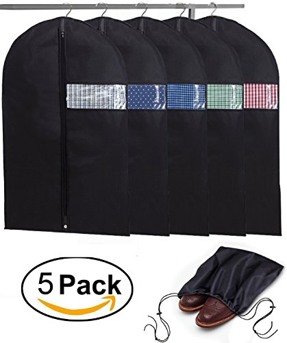 - QUALITY: Includes 5 premium Garment Bag covers with a water-resistant Shoe Bag–each is 42in long