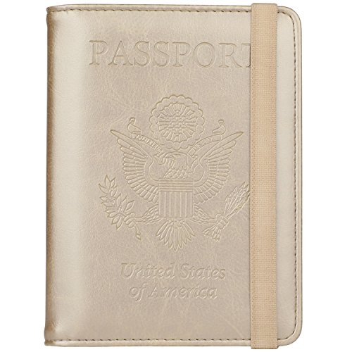 GDTK Leather Passport Holder Cover Case RFID Blocking Travel Wallet (Gold #3)