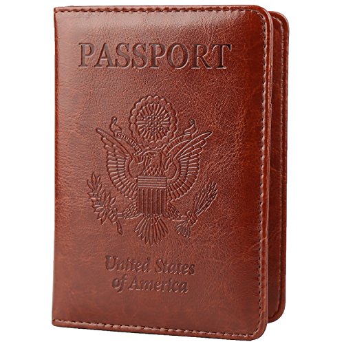 GDTK Leather Passport Holder Cover RFID Blocking Travel Wallet (Brown)