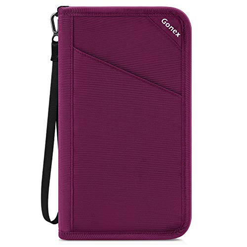 Gonex Passport Holder Travel Wallet Document Holder Pouch Organizer Case RFID Blocking for Women Men with Removable Wristlet Strap Deep Purple