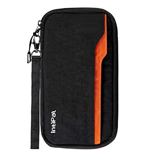 Great Travel Organizer for Families When your family is going to have a trip that you have been planning for months, the last thing that you want is a missing passport or boarding pass. Worry NO more, INTP family passport organizer is specifically designed for traveling families, it has plenty of room for several passports, keep everything you need well organized in one place without fumbling with a personal bag or purse. It is widely used for traveling overseas, camping, business trips. Made of durable nylon fabric, waterproof, lightweight with a removable strap, easy to carry it anywhere you want. Various tests have been done to ensure its durability, functionality and sleek look. It fits into your briefcase, handbag, messenger bag or knapsack. RFID Protection Electronic pick pocketing and identity theft are on the rise. Identity thieves could steal your personal information in a surprising way without your realizing it. Given the aforementioned reality, RFID blocking technology becomes more and more important for travelers.There is a layer made by RFID blocking material, which protects your travel documents against unwanted scans. Keep your personal information only accessible to you. Package Includes: 1 x IntiPal RFID Blocking Travel Passport Wallet (Black & Orange)