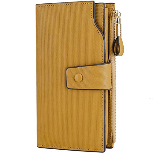 - Women leather wallet & billfolds multifunctional with 21 card slots(including 1 id window),3 full-length bill compartments,1 snap cash pocket and 1 zipper phone case.Keep your credit cards, cash, coins, notes, receipts,checkbook and your cell phone well organized.Ultra Practical;