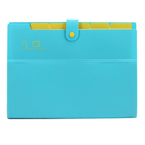 Kobest 5 Pockets Expanding file folder Accordion document Organizer,A4 Size and letter with bouton closure For School and Office uses (Blue)