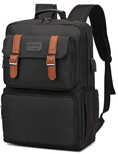 Laptop Backpack for Men and Women Travel Backpack Bookbag School Bag Anti-Theft Backpacks Water Resistant Vintage College Backpack Computer Back Pack Work Backpack with USB Charging Port Black