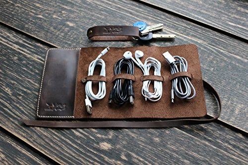 Leather Cord Organizer Wrap Holder Cable bag Roll Holder Earphone wrap winder Travel Accessories (Brown) + gift. Y2S