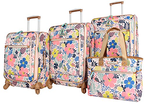 Lily Bloom Luggage Set 4 Piece Suitcase Collection With Spinner Wheels For Woman (Trop Pineapple)