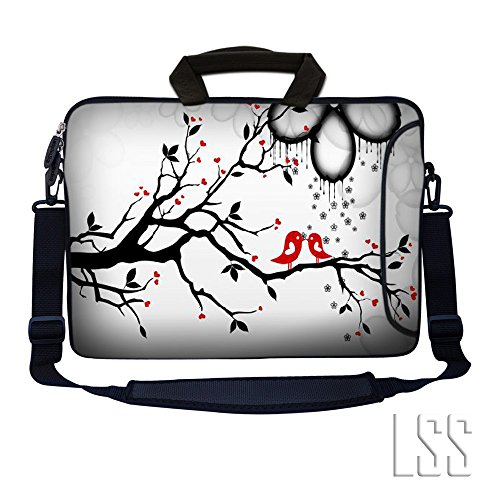 LSS 17 inch Laptop Sleeve Bag Notebook with Extra Side Pocket, Soft Carrying Handle & Removable Shoulder Strap for 16″ 17″ 17.3″ 17.4″ Apple MacBook Air, GW, Acer, Aspire Asus, Dell, HP, Sony, Toshiba, Samsung – Love Birds