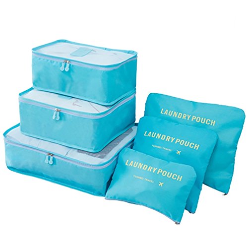 Luggage Packing Organizers Mesh Travel Compression Pouches Packing Cubes Clothing Sorting Packages Suitcase Accessories 6 Set-Light Blue