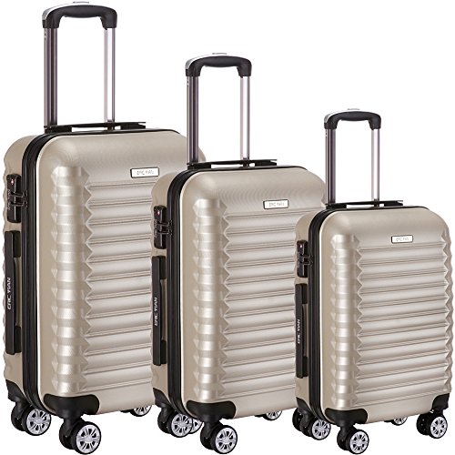 - LUGGAGE 3PC HARD SHELL TRAVEL SET: Each ERIC YIAN hard luggage set contains 3 separate suitcases that stack into one another. You’ll receive one 20 inch suitcase, one 24 inch travel bag & one 28 inch suitcase on wheels.