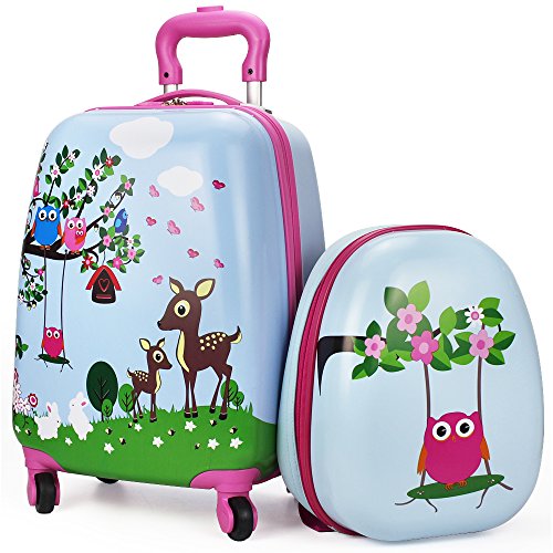 - Holiday deals! Toddler luggage with hard shell protection but light weight, Perfect as hand luggage on Airlines, Weekends Away or Sleep-overs. Kids can take a backpack and pull a rolling luggage alone on the journey to cultivate independence of kids. This luggage set are perfect combination for a trip with children. Backpack can be also regarded as school bag which is cool.