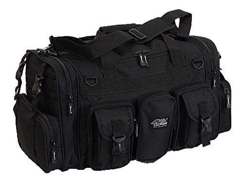 Storage is a big advantage with this tactical duffle. It has 2 adjustable buckle snap flap pockets (6L x 3.5W), 2 zippered pockets (7L x 4.5W), 1 zippered middle pocket (7.5L x 3.75W).
