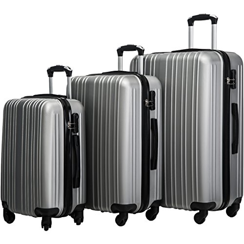 This Merax luggage set are esigned to provide travelers comfort, functionality, reliability, and peace of mind, this 3 piece suitcase set features one 28inch suitcase, one 24inch suitcase for checking in and one 20inch suitcase suitable for carrying onto the plane. With Lightweight durable ABS hard shell material, it makes the luggage durable, flexible and absorbs impact when under stress. Quiet airplane spinner wheel system and an adjustable 3-step telescoping handle system allow you to maneuver in tight spaces and provide effortless movement. This luggage allows you to pack more while avoiding the excess weight surcharges imposed by most airlines. An elegant pattern hides any potential scratches or scuffs from your journeys. With the 3-digit combination lock you secure the contents from thieves.