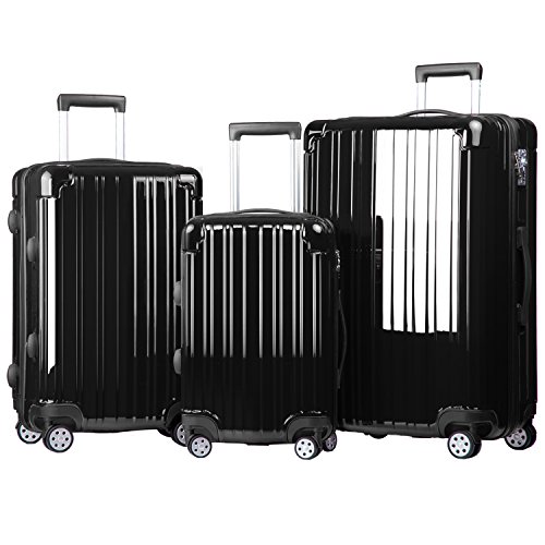 Merax Dreamy Luggage Set 3 Piece Expandable Suitcase ABS+PC with TSA Lock (Black-Dualwheel No-expand)