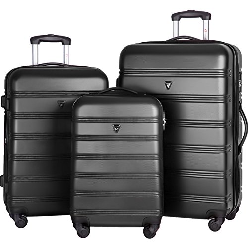 Designed to provide travelers comfort, functionality, reliability, and peace of mind, this 3 piece suitcase set features one 28inch expandable suitcase for consignment, one 24inch expandable suitcase for checking in and one 20inch suitcase(not expandable) suitable for carrying onto the plane. Constructed with lightweight durable ABS + PC color masterbatch hard shell material, this luggage is durable, flexible and can absorb impact when under stress. Quiet airplane spinner wheels and an adjustable 3-level telescoping handle allow you to quickly maneuver in tight spaces and provide effortless movement. Unique hardshell material not only protect your belongings, but also enhance overall durability. Hide any potential scratches or scuffs from your journeys with elegant embossed patterns. With the included 3- digit combination lock, you can also secure your valuables from thieves. Make packing clothes easy with the interior fully lined with multi-use organizational pockets.