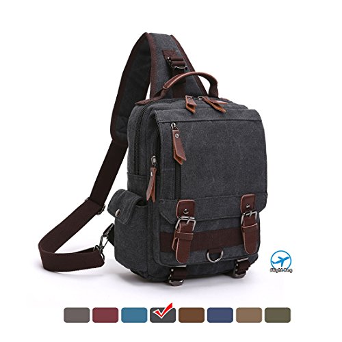 MEWAY Canvas Cross Body Messenger Bag Shoulder Sling Backpack Travel Rucksack Black