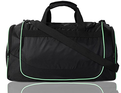 MIER gym sports bag is quite stylish, perfect size for you to take back and forth from home, school, travel and practice. The bag is very good quality and light weight, featuring 1 main compartment with separate vented shoe compartment, 1 end zipper pocket for showering stuff, an inner small pocket for valuable item, really spacefull