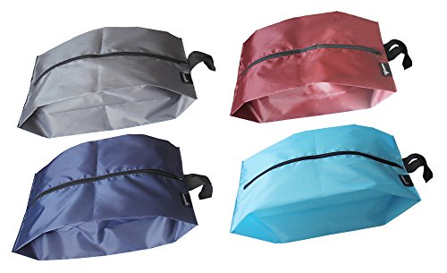Nice To Keep Your Clothes Clean These shoe bags are very well constructed with good quality nylon material but they’re almost too big. (Better too big than too small though.) The problem I had was trying to get one big shoe bag, containing a pair of athletic shoes and a pair of sandals, to fit on top of the clothes in my small carry-on suitcase. I managed to squeeze the lid shut but if the shoe bags were made smaller — to fit one shoe per bag — I think it would be more manageable to tuck two single shoe bags separately…
