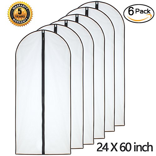 Moth Proof Garment Bags 24” x 60” ( Pack of 6 ) Black Side Breathable Clear Full Zipper Bags for The Much Longer Wedding Evening Dress Clothes.