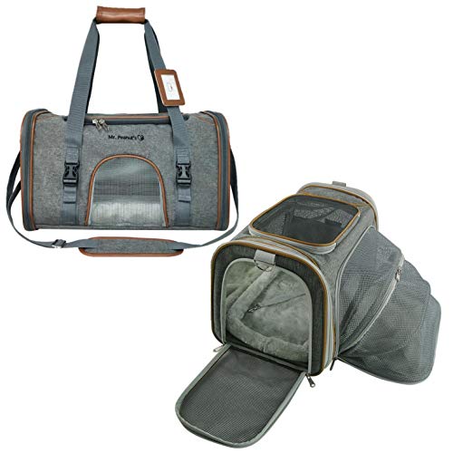 Mr. Peanut’s Expandable Airline Approved Soft Sided Pet Carrier, Luxury Travel Tote with Premium Auto Self Locking Zippers, Plush Faux Fleece Bedding with Sturdy Plywood Base, 18LX10.5 (Twilight Gray)