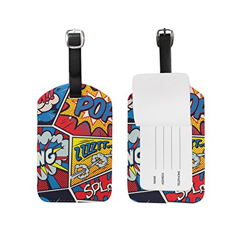 My Daily Retro Pop Art Comic Luggage Tag PU Leather Bag Tag Travel Suitcases ID Identifier Baggage Label