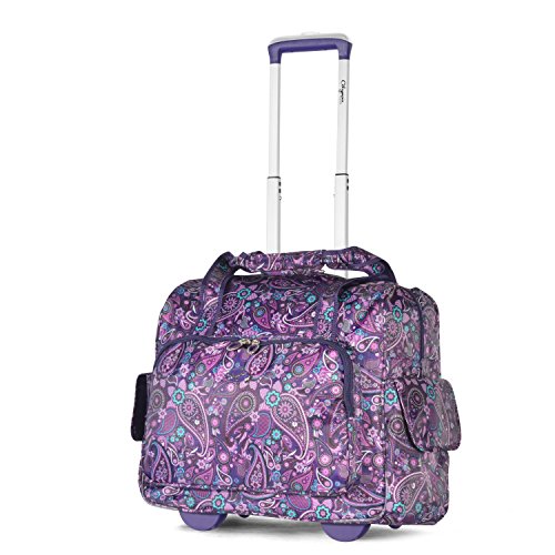 Olympia Deluxe Fashion Rolling Overnighter Travel Tote, Purple Paisley, One Size