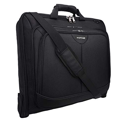 Partage Carry on Garment Bag for Travel, Waterproof Hanging Suit, Black
