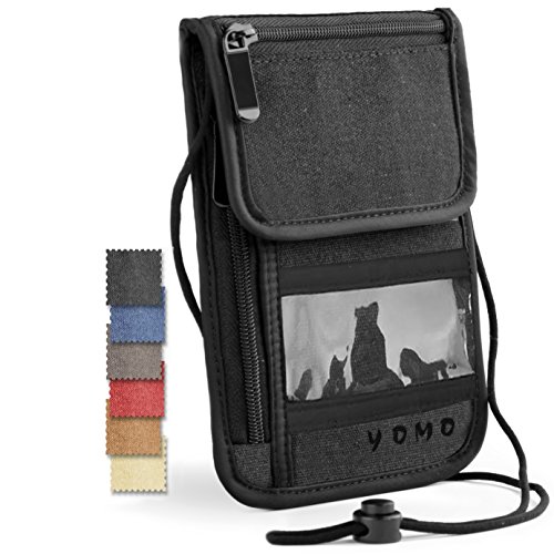 Passport Holder- by YOMO. RFID Safe. The Classic Neck Travel Wallet. (Black With Window ID-Deluxe)