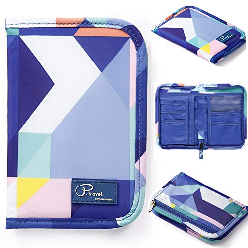 Passport Wallet Holder for Men&Women,RFID Blocking Travel Waterproof Credit Card&Money Bag Multifunctional Family Zipper Cellphone Case Accessories Storage Organizer (Blue Geometry)