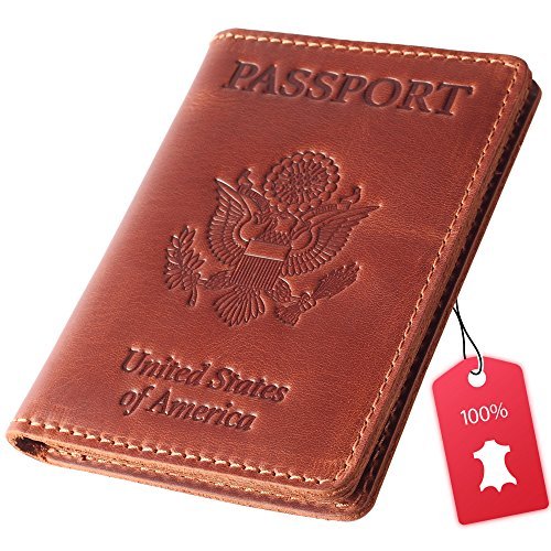 Rachiba Leather Passport Wallet – USA Embossed Travel Document and Ticket Holder